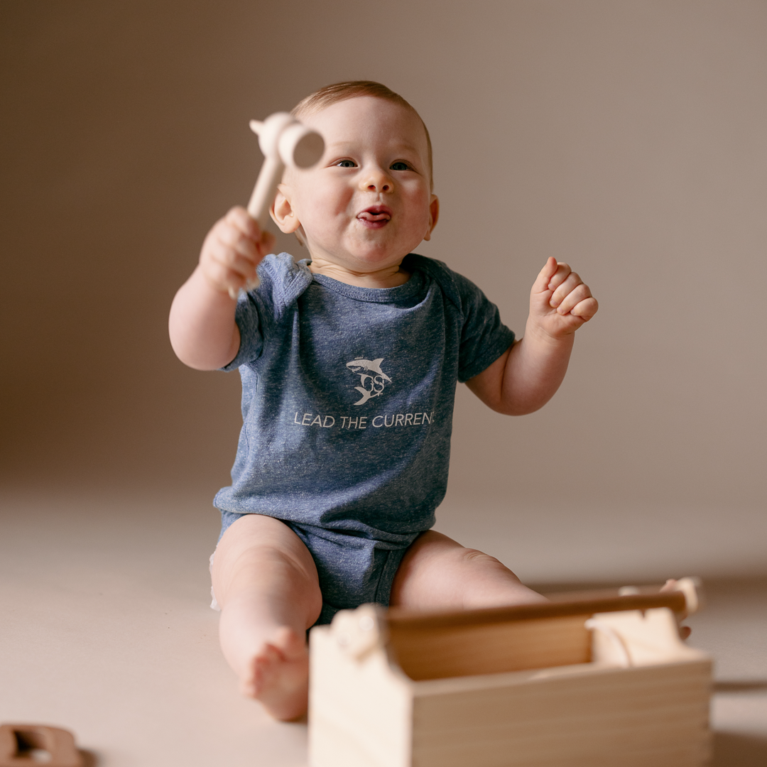 Simple and playful - two of the biggest inspirations we drew from the Nurse Shark in creating the collection. They are often found in shallow waters and are among the ocean's friendliest sharks. Spending their time foraging for prey, we compared them to how our Littles navigate their space. Crawling, exploring, and hopefully not putting everything in their mouths.